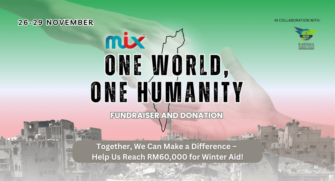 Dalam satu usaha murni yang menyentuh hati, stesen radio MIX melancarkan kempen “One World, One Humanity” sebagai tanda solidariti terhadap mangsa perang di Gaza. Dengan kerjasama rapat bersama organisasi bukan kerajaan Karisma Humanitarian Outreach Mission (KHOM), kempen ini bertujuan meringankan beban rakyat Gaza yang kini berdepan krisis kemanusiaan yang amat kritikal. Bacaan artikel lanjut disini.